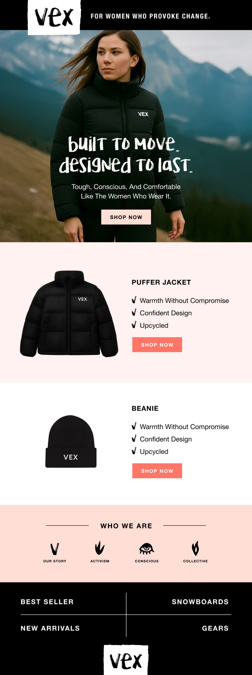 Born in the mountains and made for movement, VEX empowers women to own their era — with style that provokes change, not conflict.