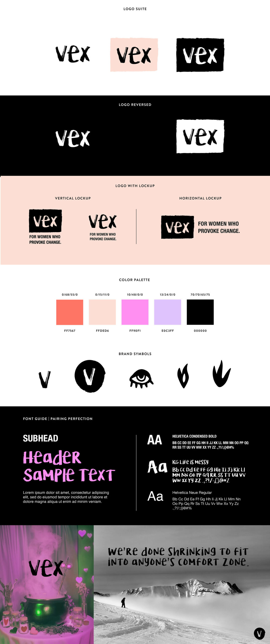• Typography: Expressive brush headlines + clean geometric body